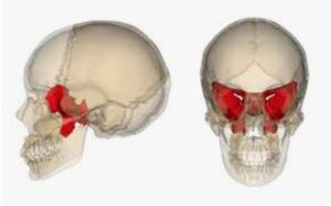 こめかみの凹んでいる部分を指で押しながら揺らしたり、下制(下にずらす)させたり、頬骨を手のひらで押して揺らしながら徐々に外に広げていく。