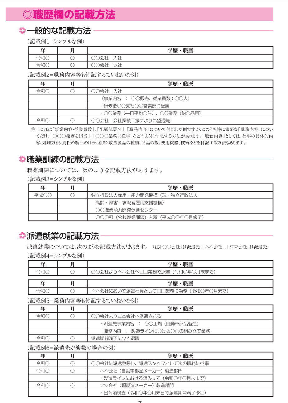 ハローワーク履歴書書き方